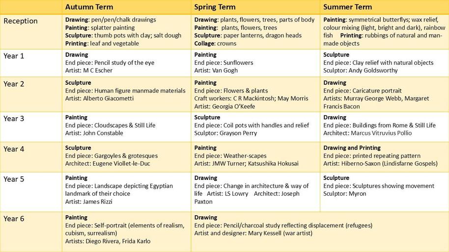 | Year 3 | John Constable | Grayson Perry | Marcus Vitruvius Pollio | ||